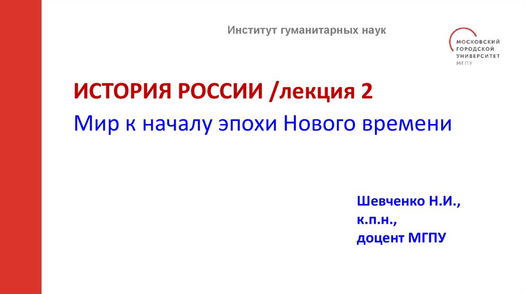 Институт гуманитарных наукИСТОРИЯ РОССИИ /лекция 2