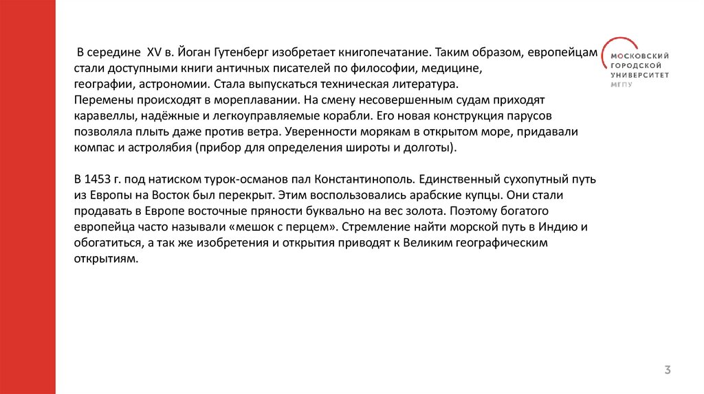 44В середине XV в. Йоган Гутенберг изобретает книгопечатание. Таким образом, европейцам