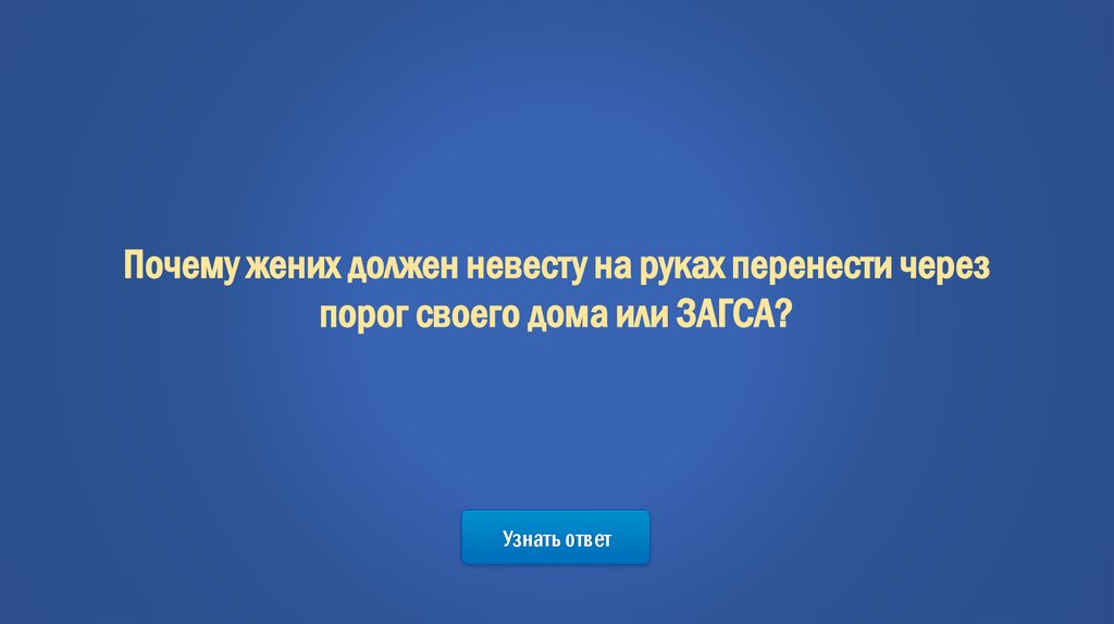Почему жених должен невесту на руках перенести черезпорог своего дома или ЗАГСА?