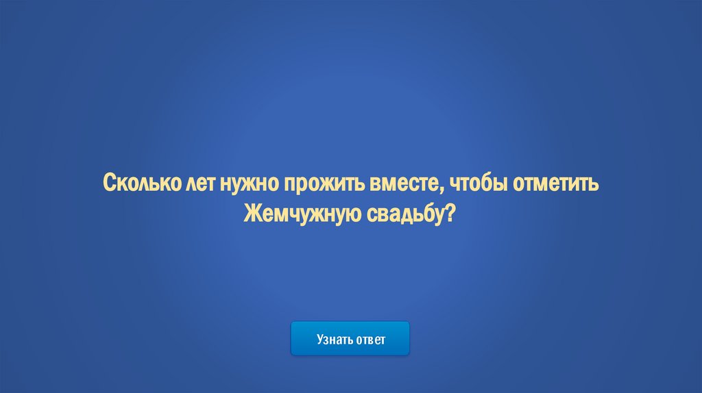 Сколько лет нужно прожить вместе, чтобы отметитьЖемчужную свадьбу?