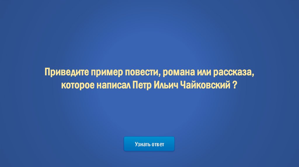 Приведите пример повести, романа или рассказа,которое написал Петр Ильич Чайковский ?