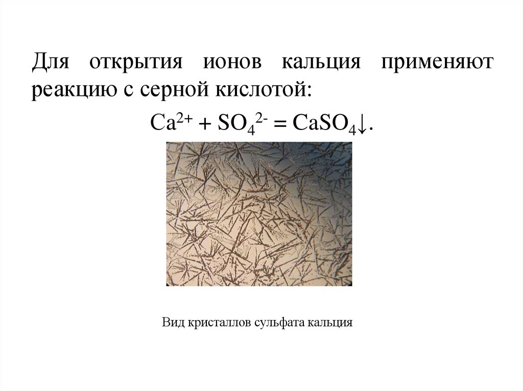 Для открытия ионов кальция применяютреакцию с серной кислотой: