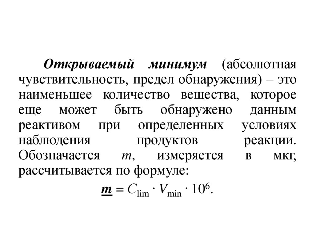 Открываемый минимум (абсолютнаячувствительность, предел обнаружения) – это