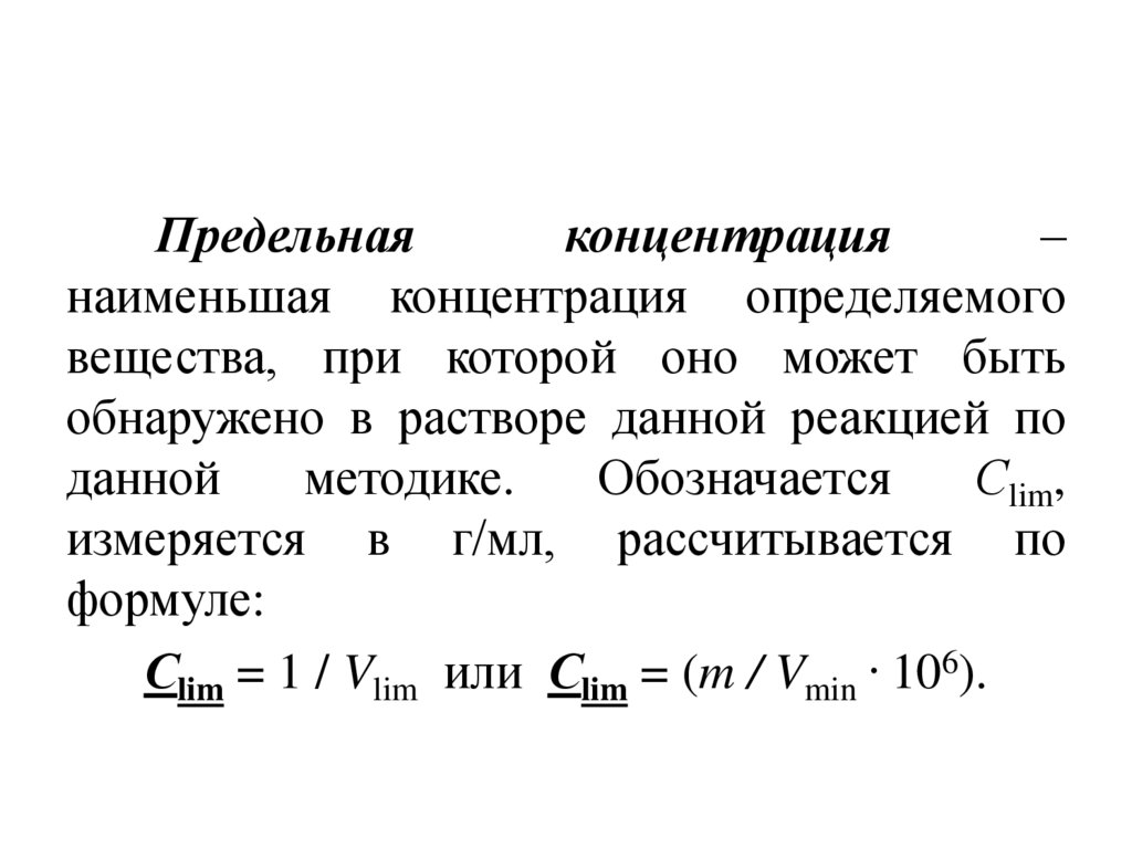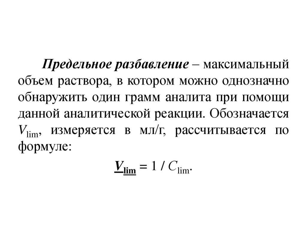 Предельное разбавление – максимальныйобъем раствора, в котором можно однозначно