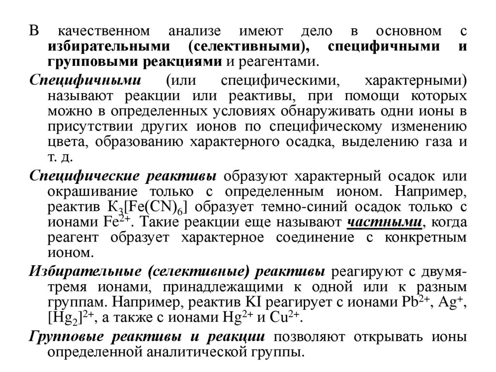 Избирательные (селективные) реактивы реагируют с двумятремя ионами, принадлежащими к одной или к разным