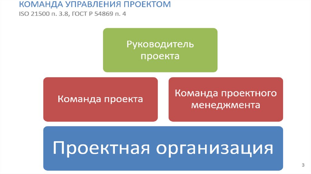 Команда проекта – совокупность лиц, групп и/или организаций, объединенных вовременную организационную структуру для выполнения работ проекта