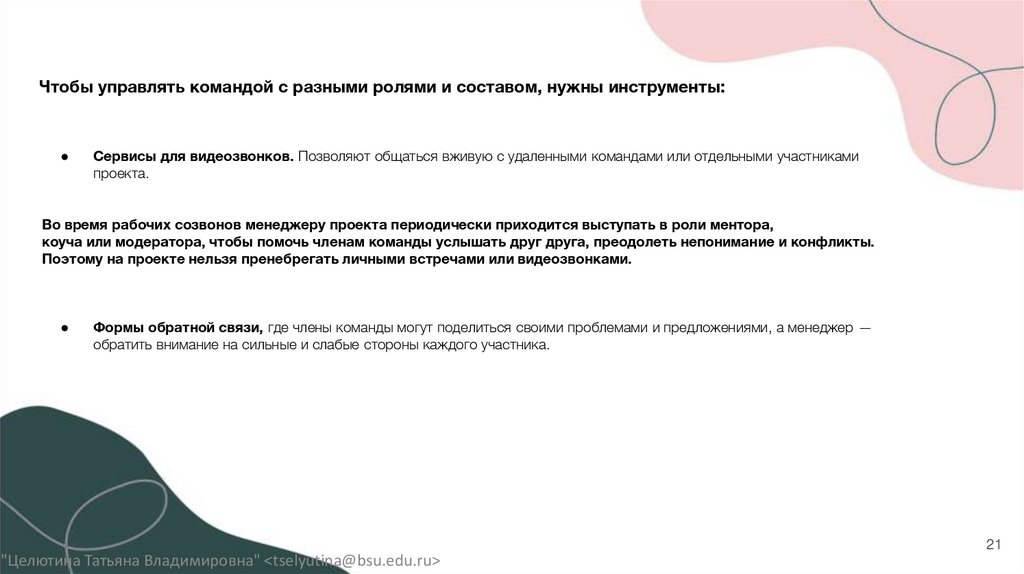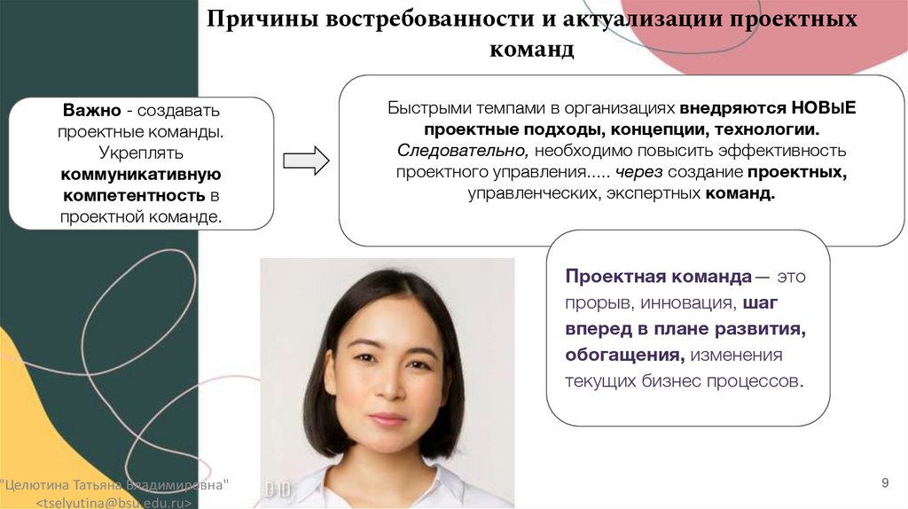 "Целютина Татьяна Владимировна" <tselyutina@bsu.edu.ru>2. Что такое команда проекта ?