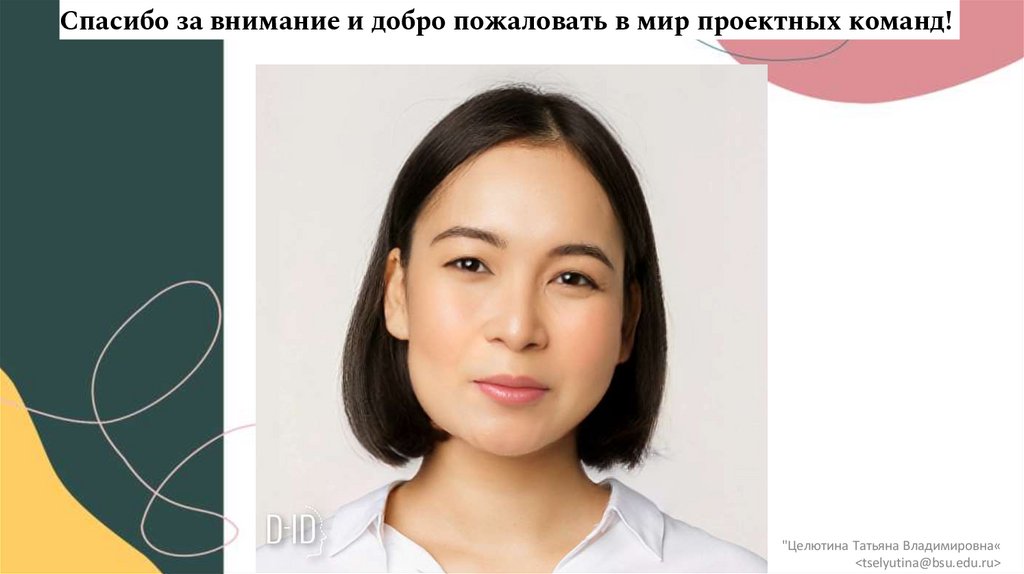 Спасибо за внимание и добро пожаловать в мир проектных команд!"Целютина Татьяна Владимировна«