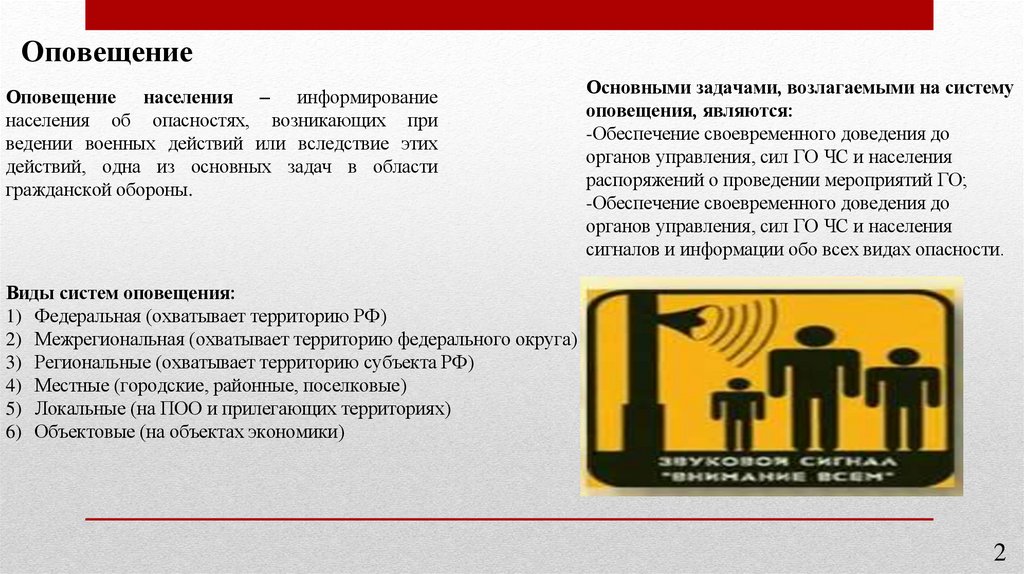 Презентация по ОБЗР на тему Мероприятия по оповещению ...зе населения при ЧС и возникновении угроз военного характера (8 класс)