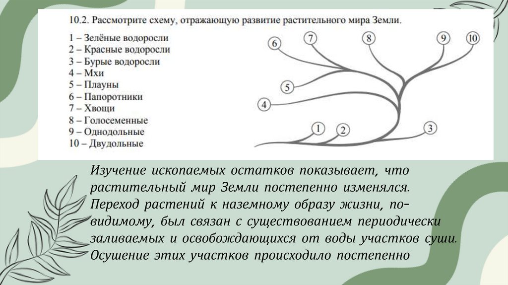 Изучение ископаемых остатков показывает, чторастительный мир Земли постепенно изменялся.