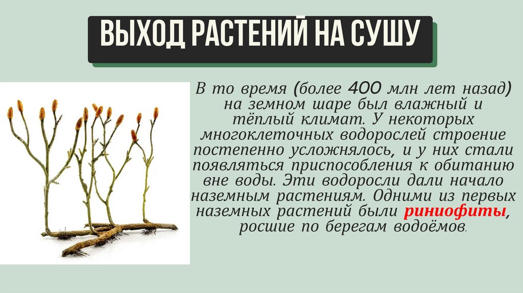 Выход растений на сушуВ то время (более 400 млн лет назад)