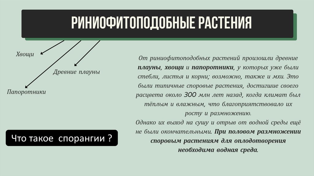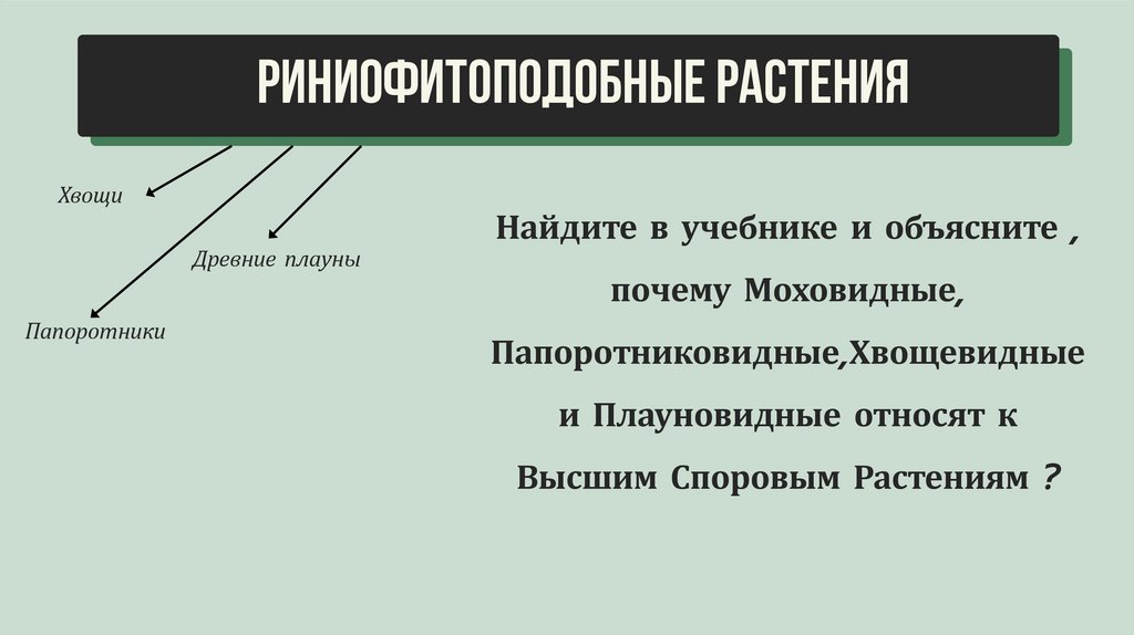 папоротниковидные, хвощевидные и плауновидные. Все эти