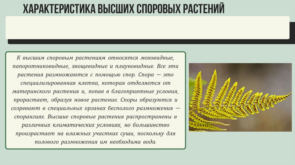 ВЫСШИЕ СПОРОВЫЕ РАСТЕНИЯБиология
