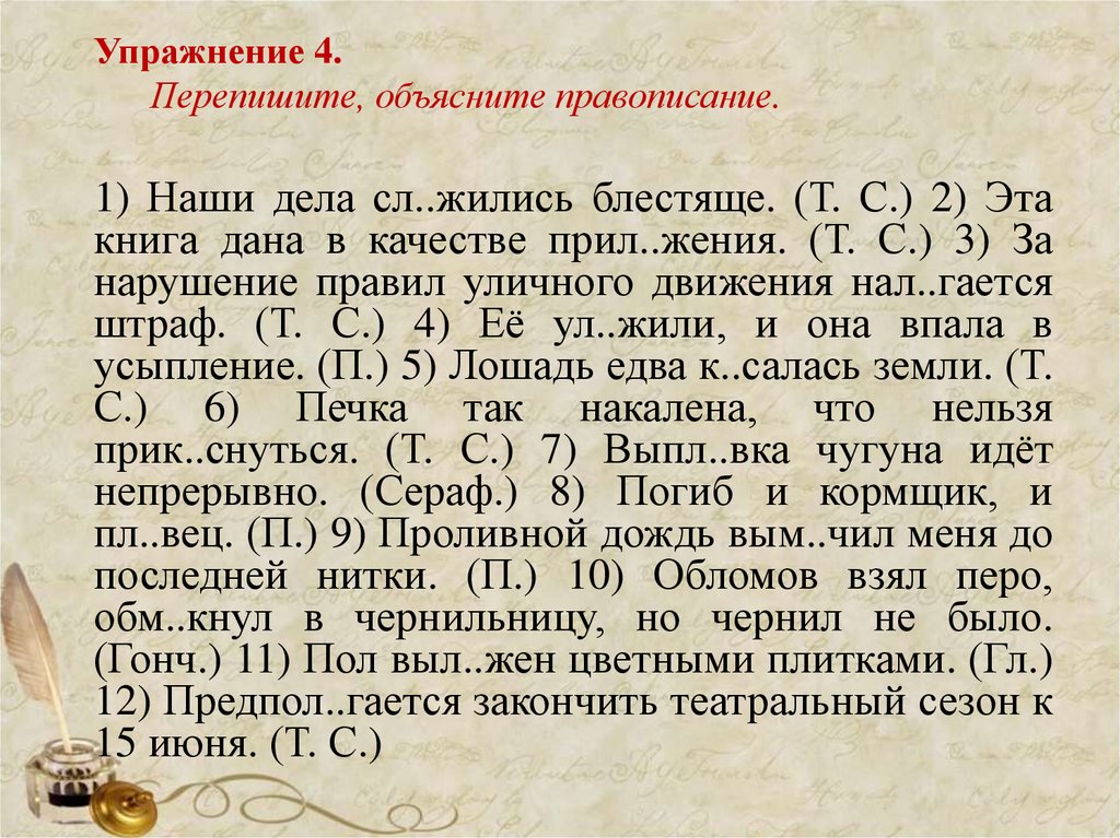 (Гонч.) 11) Пол выл..жен цветными плитками. (Гл.)