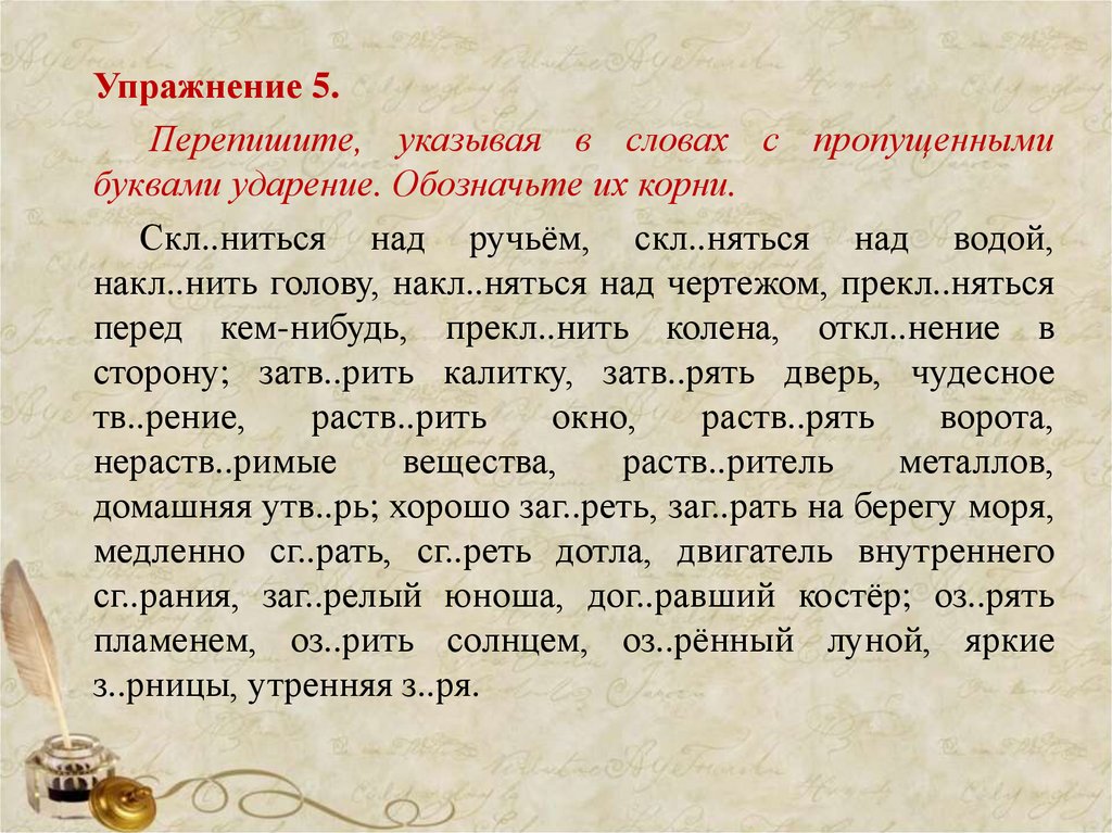Упражнение 5.Перепишите, указывая в словах с пропущенными