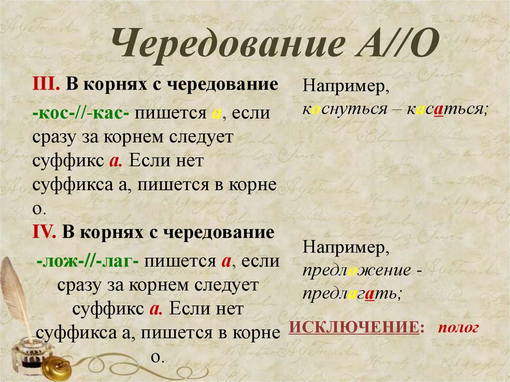 суффикса а, пишется в корне ИСКЛЮЧЕНИЕ: полог