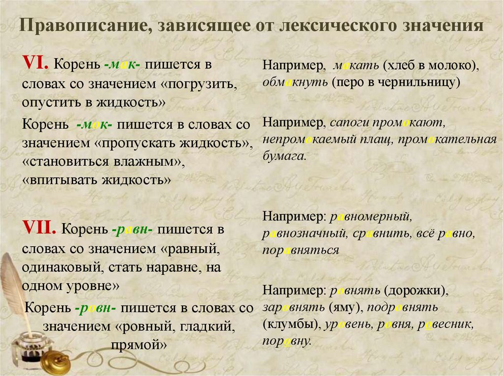 Правописание, зависящее от лексического значенияVI. Корень -мак- пишется в