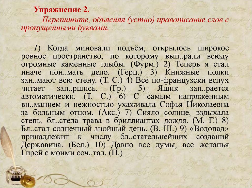 Упражнение 2.Перепишите, объясняя (устно) правописание слов с