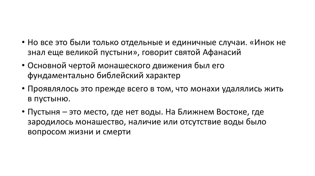 • Но все это были только отдельные и единичные случаи. «Инок незнал еще великой пустыни», говорит святой Афанасий