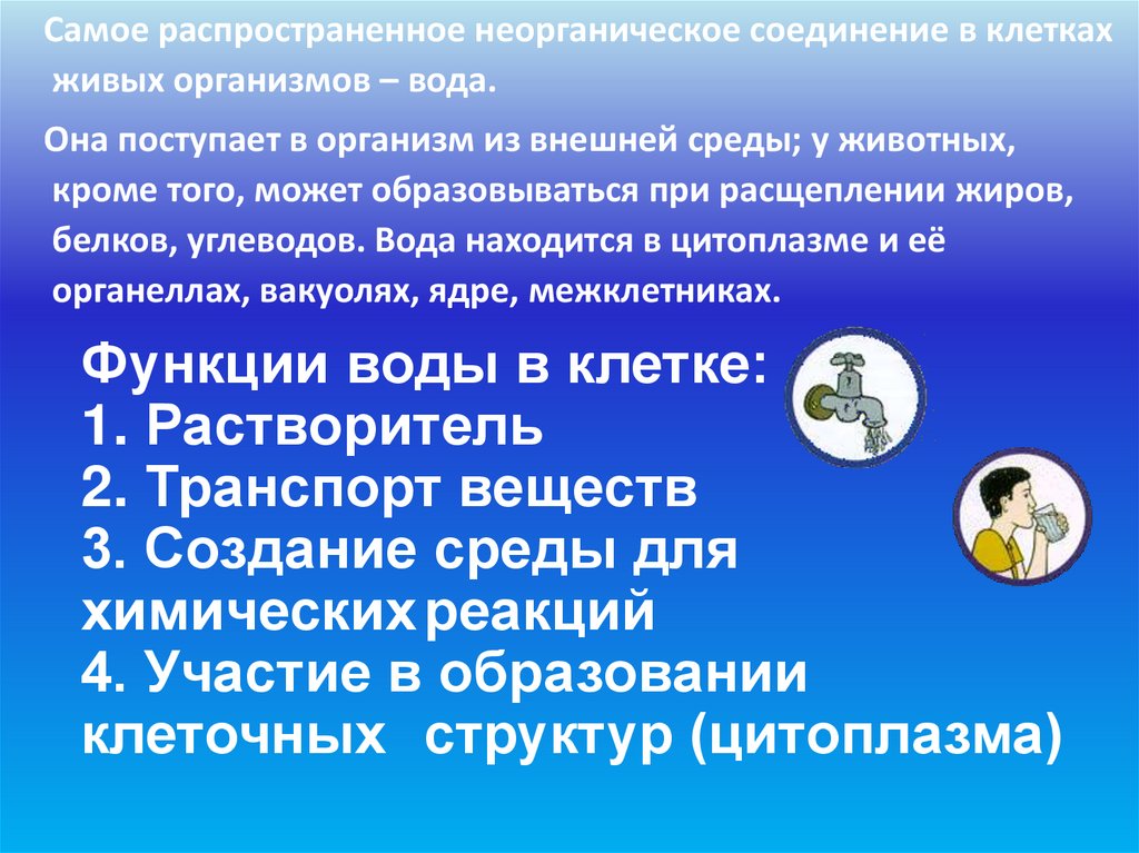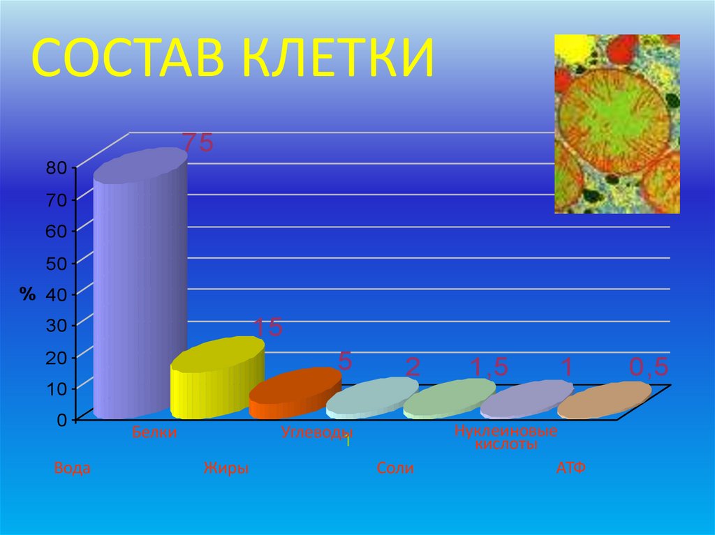 Минеральные соли составляют 1–1,5% общеймассы клетки
