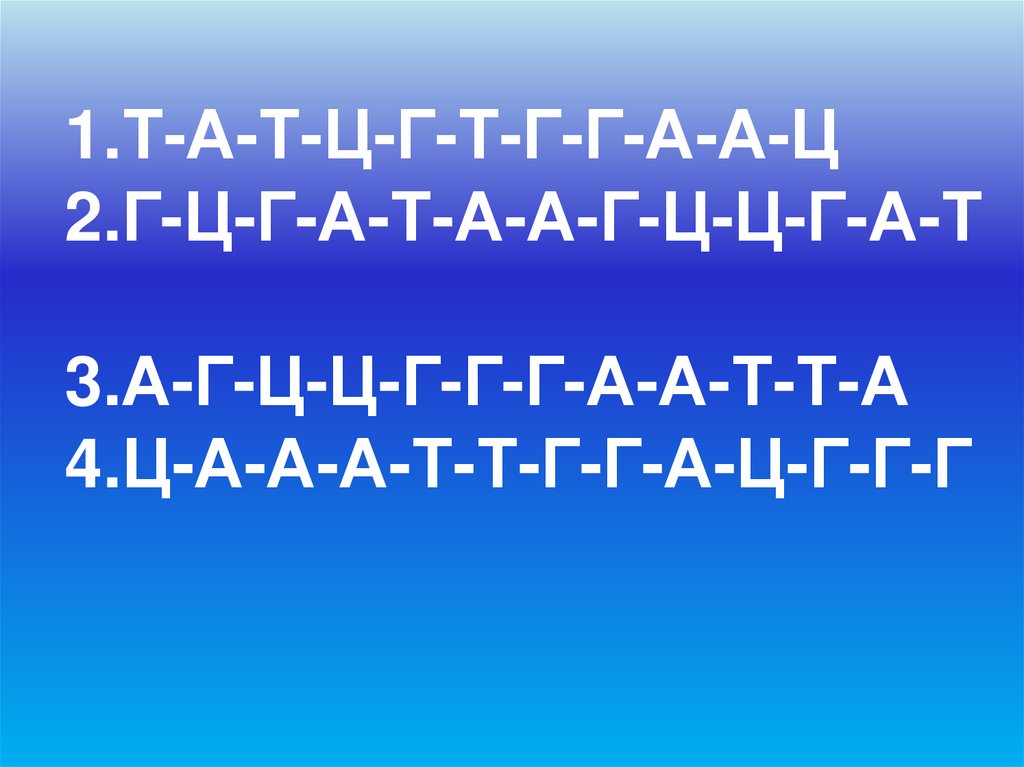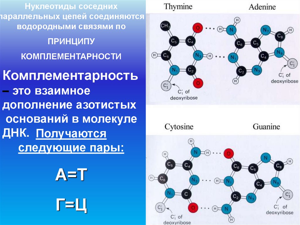 А-Т; Т-А; Г-Ц; Ц-Г.