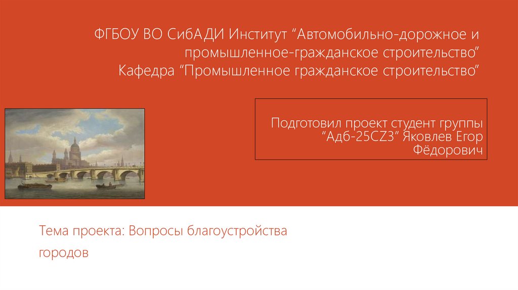 1. ФГБОУ ВО СибАДИ Институт “Автомобильно-дорожное и промышленное-гражданское строительство” Кафедра “Промышленное гражданское