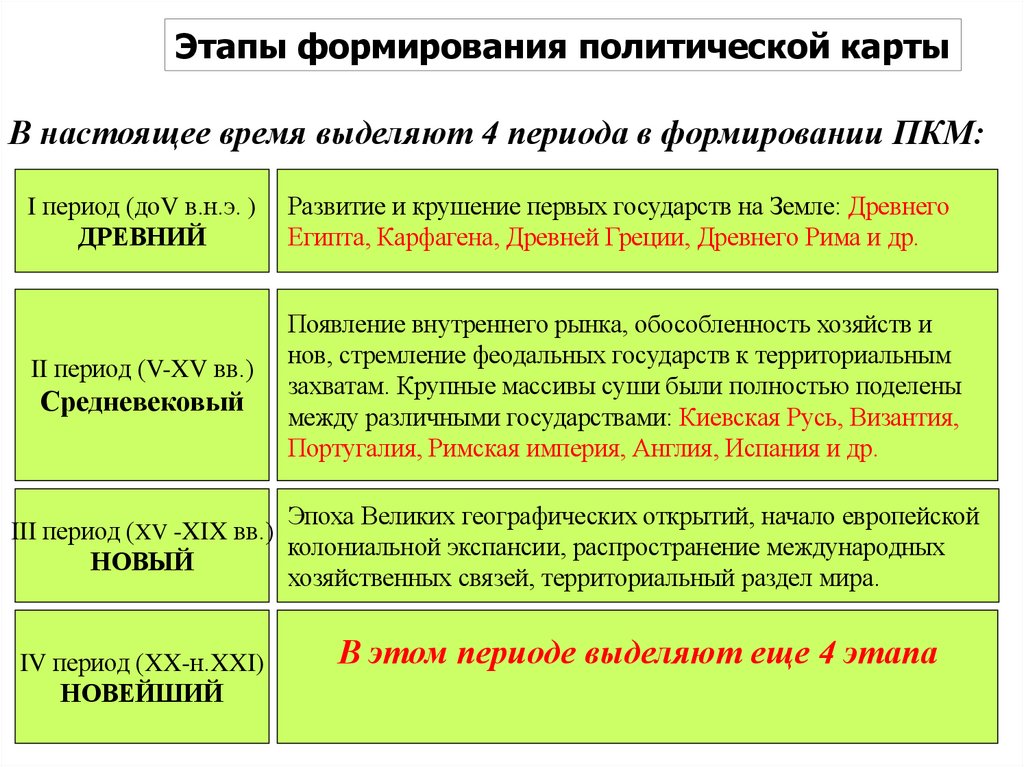 Этапы формирования политической картыВ настоящее время выделяют 4 периода в формировании ПКМ: