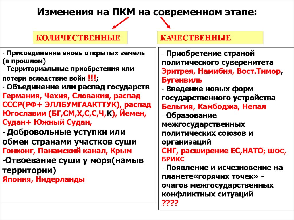 Изменения на ПКМ на современном этапе:КОЛИЧЕСТВЕННЫЕ