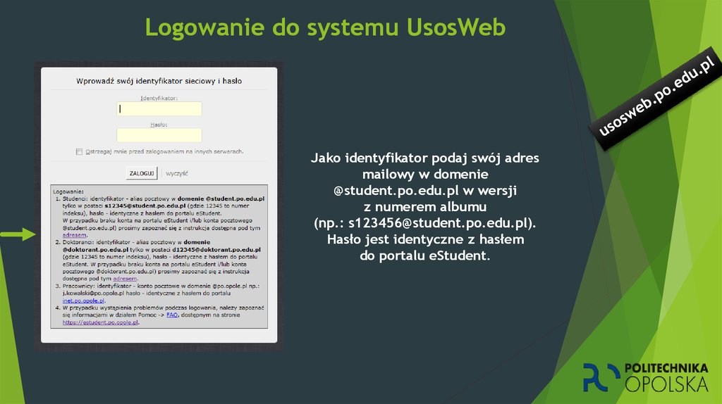 Logowanie do systemu UsosWebJako identyfikator podaj swój adres