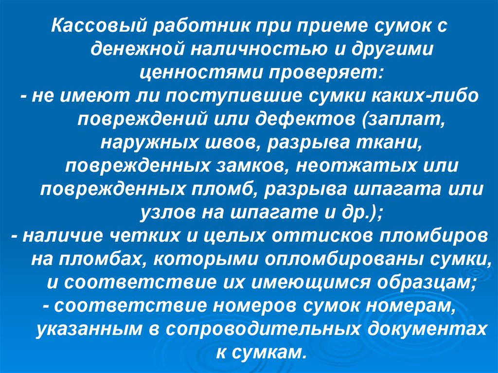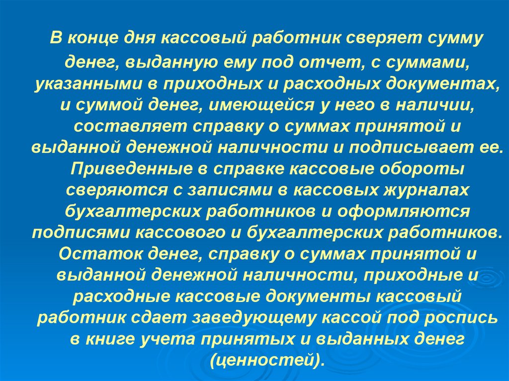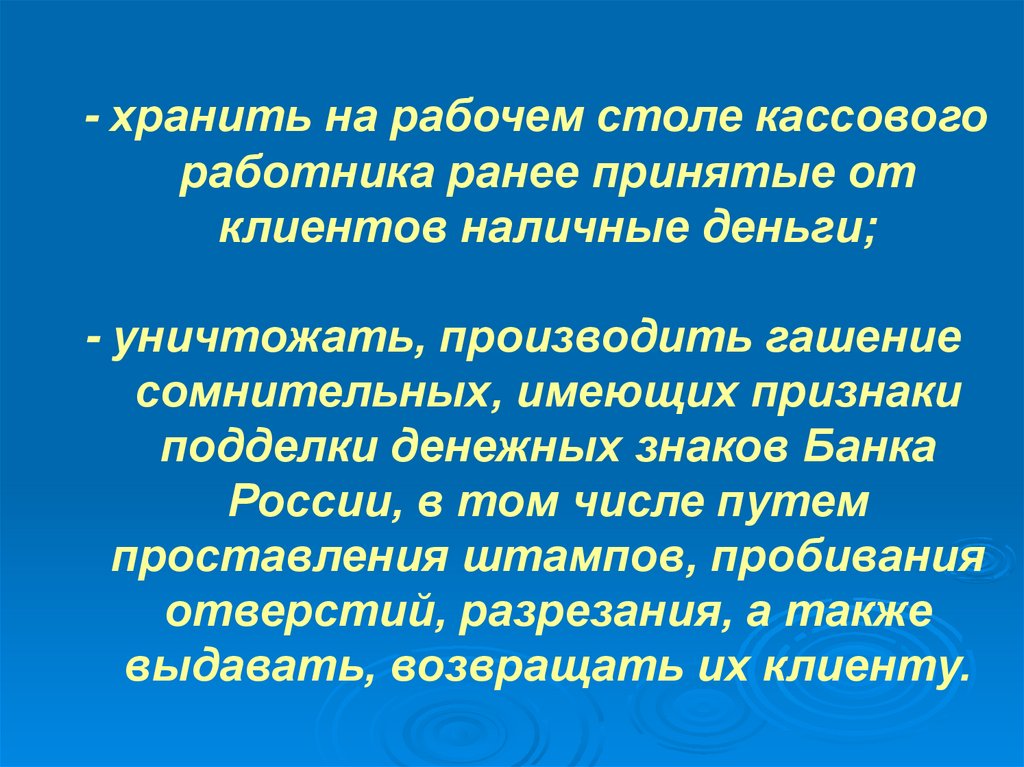 - хранить на рабочем столе кассовогоработника ранее принятые от
