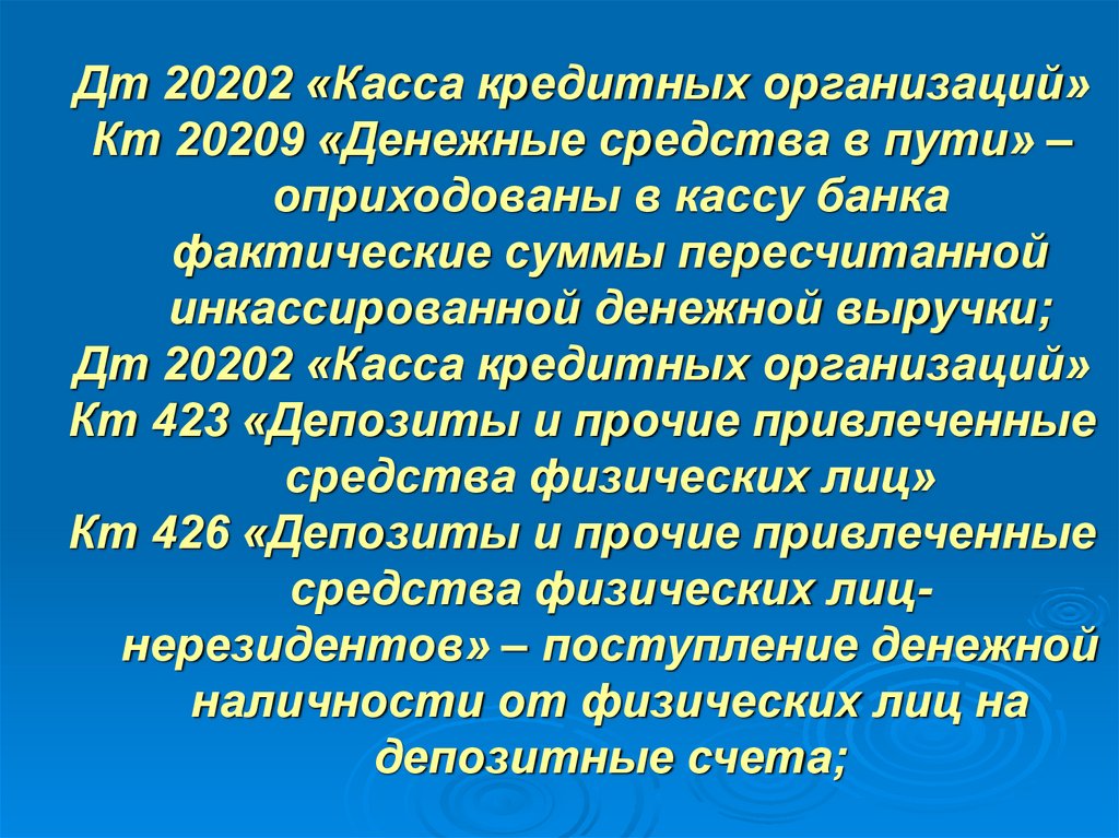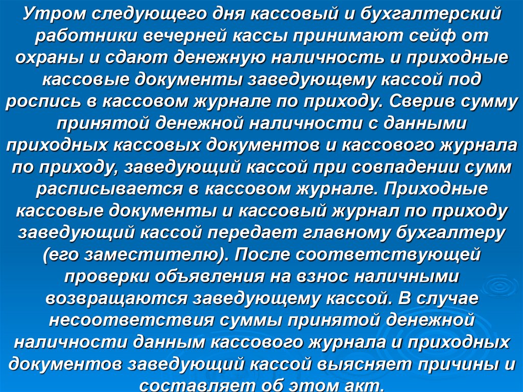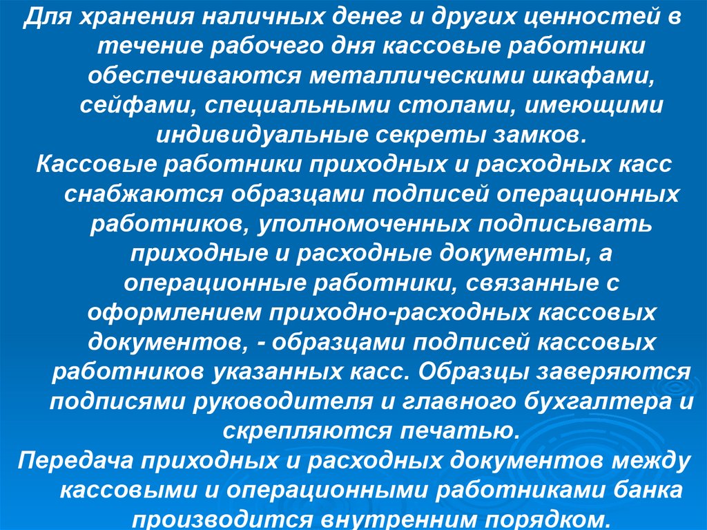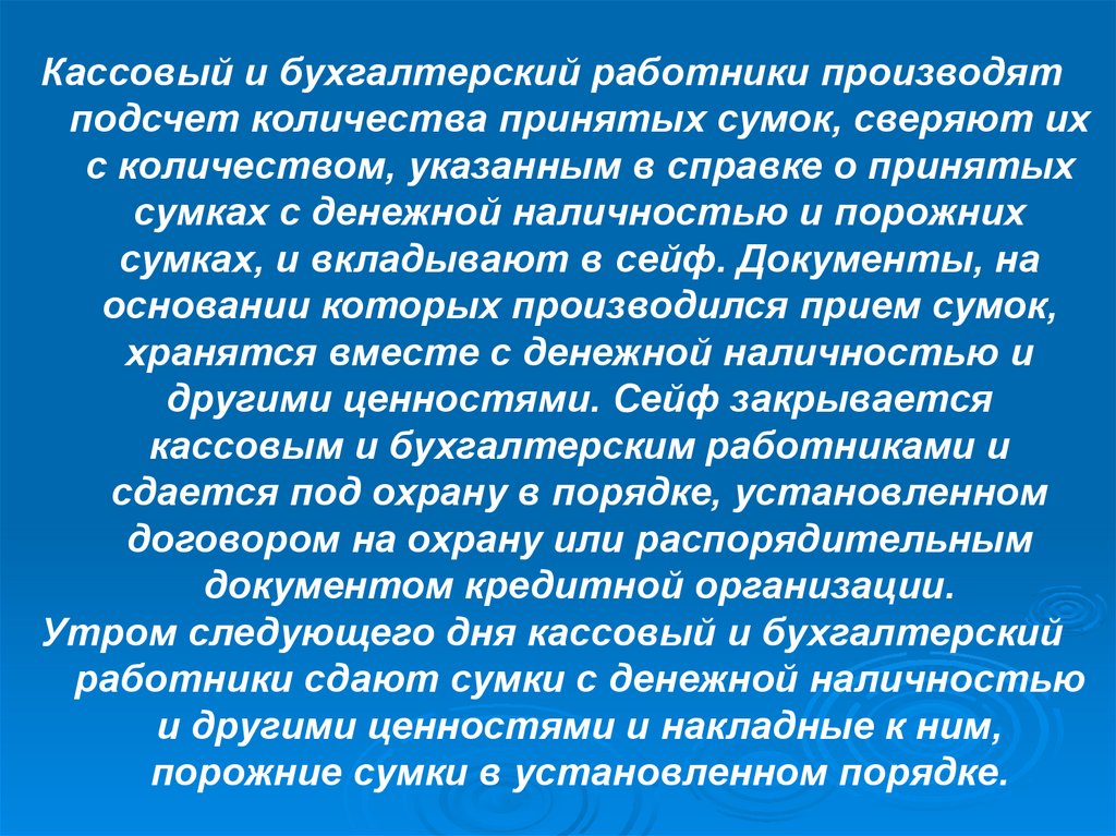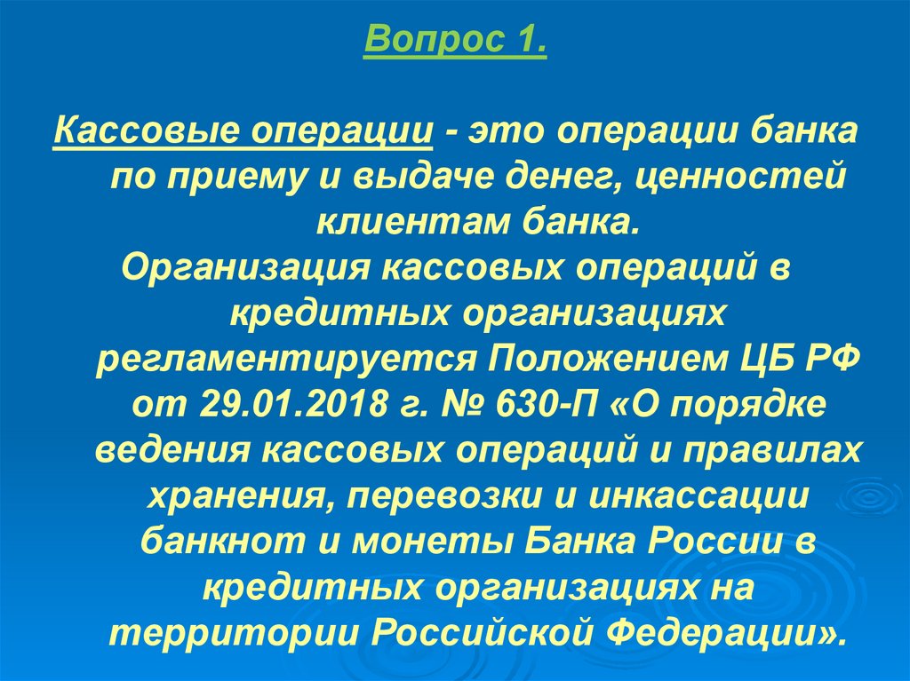 9. Вопрос 2. Вся денежная наличность банка, используемая для выполнения кассовых операций, называется операционной кассой. Прием