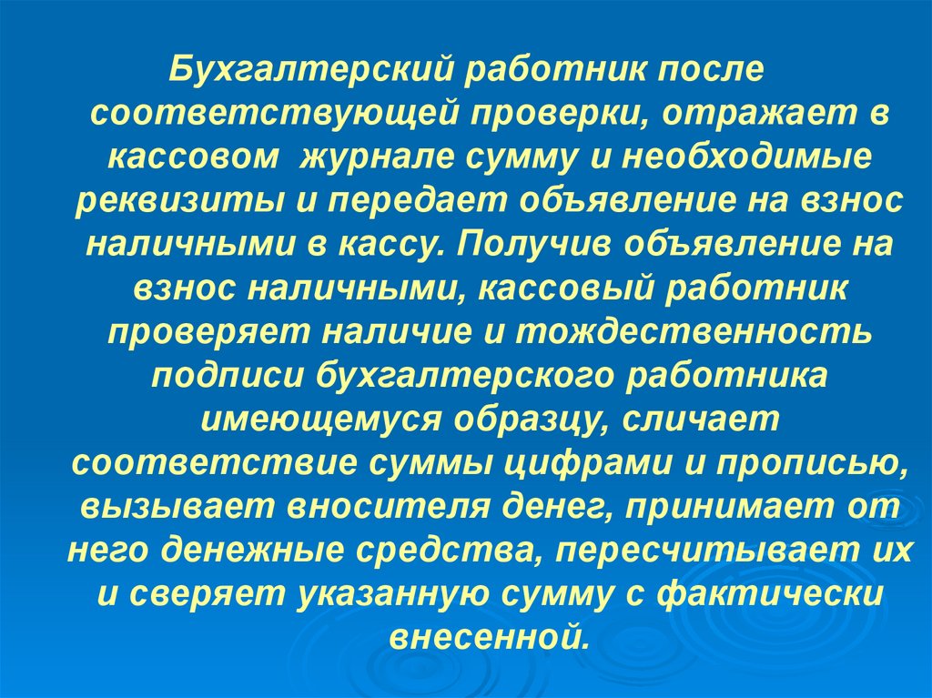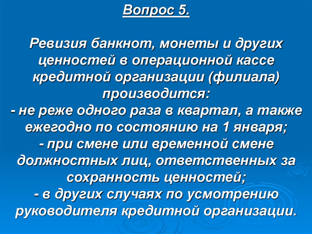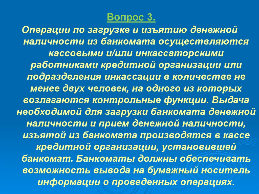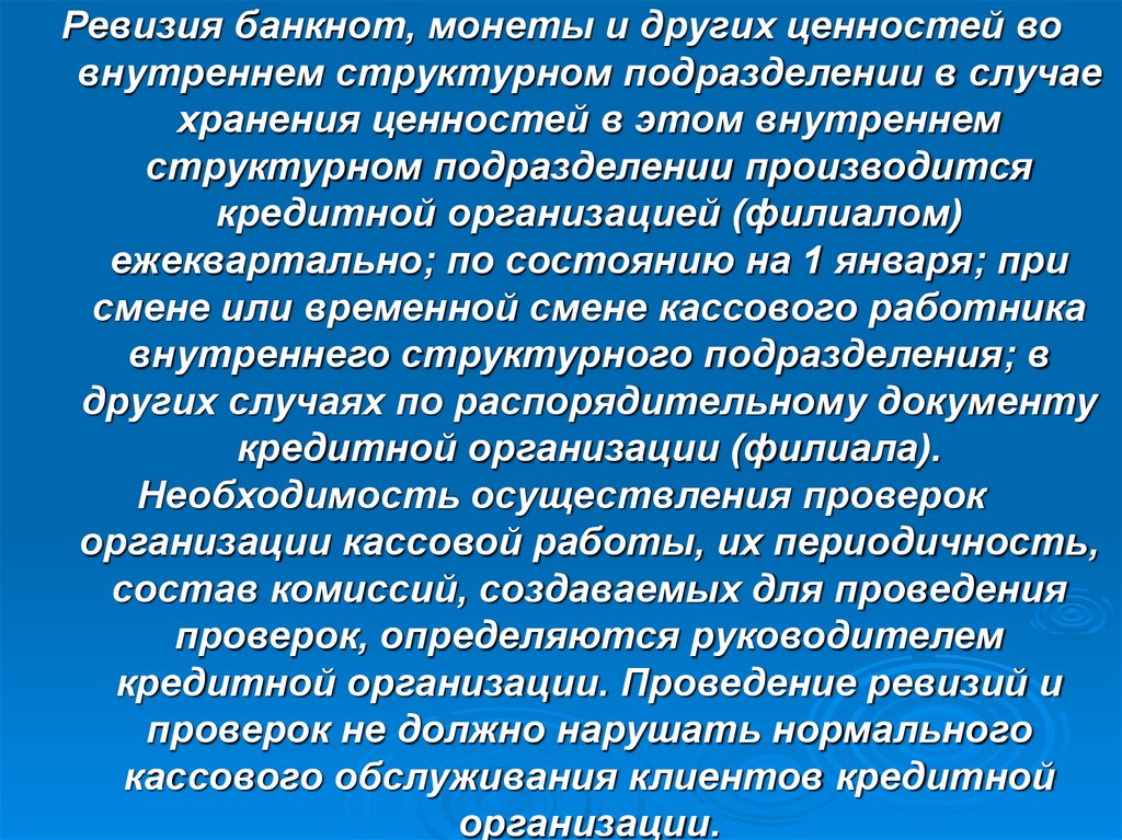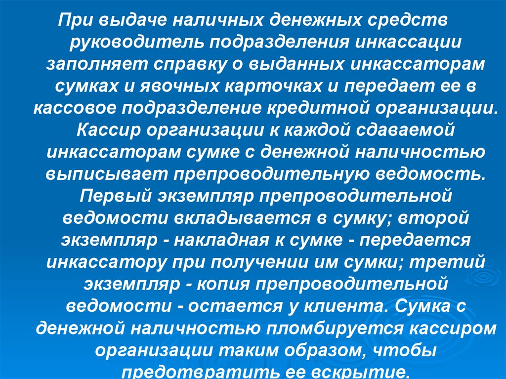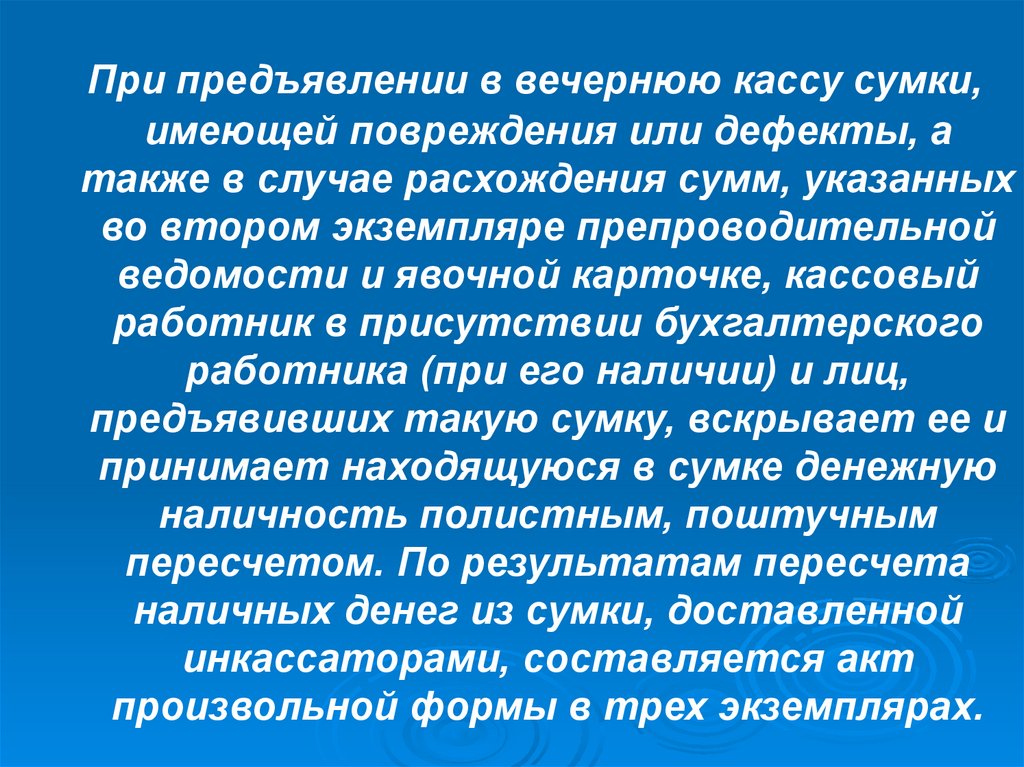 9. Вопрос 2. Вся денежная наличность банка, используемая для выполнения кассовых операций, называется операционной кассой. Прием