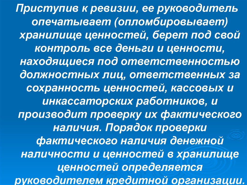 Приступив к ревизии, ее руководительопечатывает (опломбировывает)