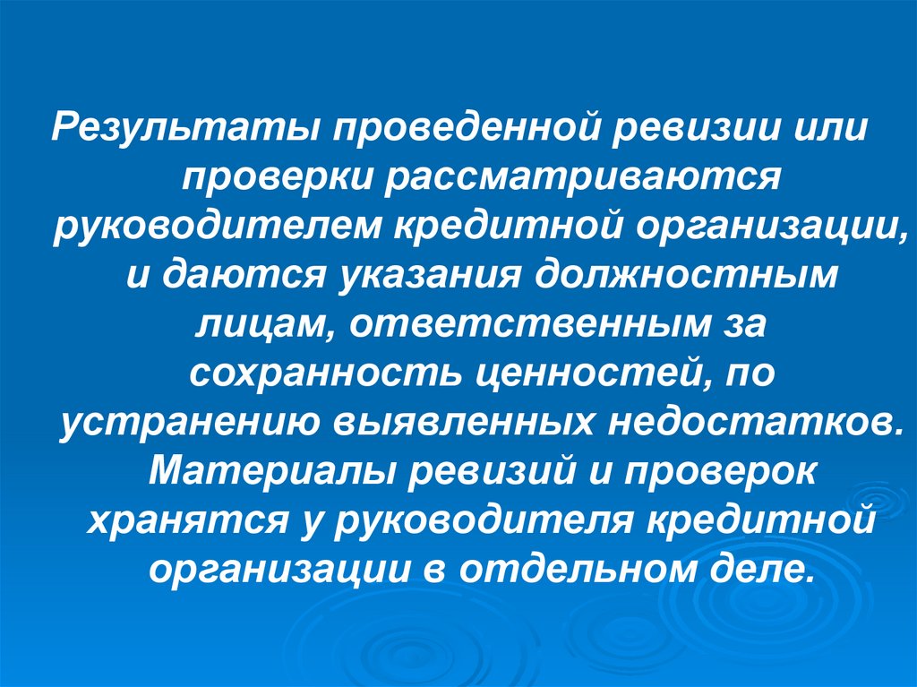 50. В акте о произведенной ревизии должны быть приведены следующие данные: - суммы денег и ценностей, числящиеся на день ревизии по