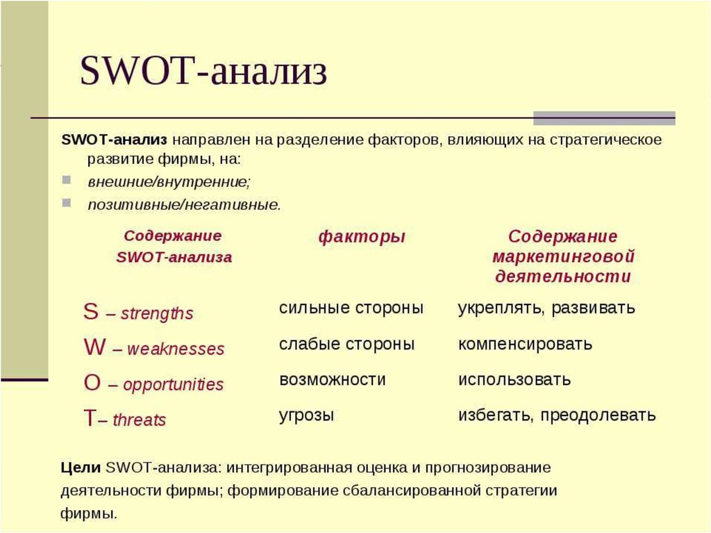 стороны, слабые стороны, благоприятные возможности,