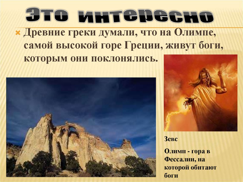Древние греки думали, что на Олимпе,самой высокой горе Греции, живут боги,