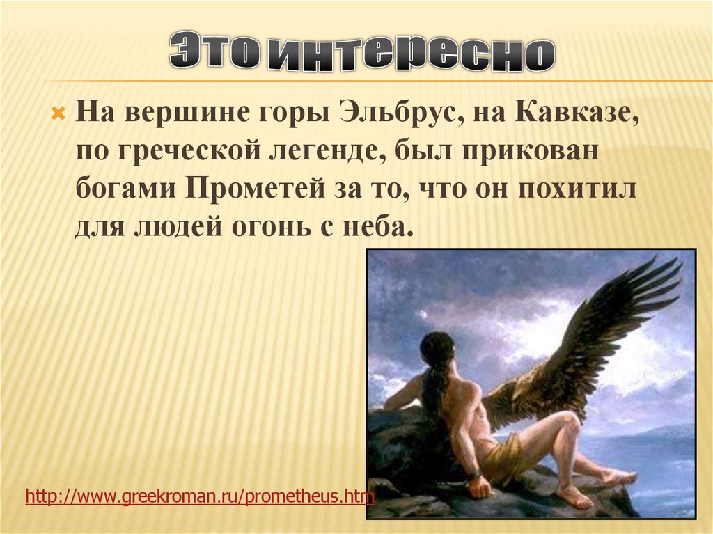 На вершине горы Эльбрус, на Кавказе,по греческой легенде, был прикован