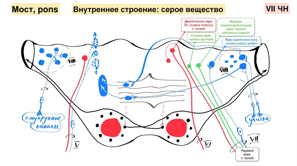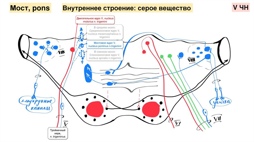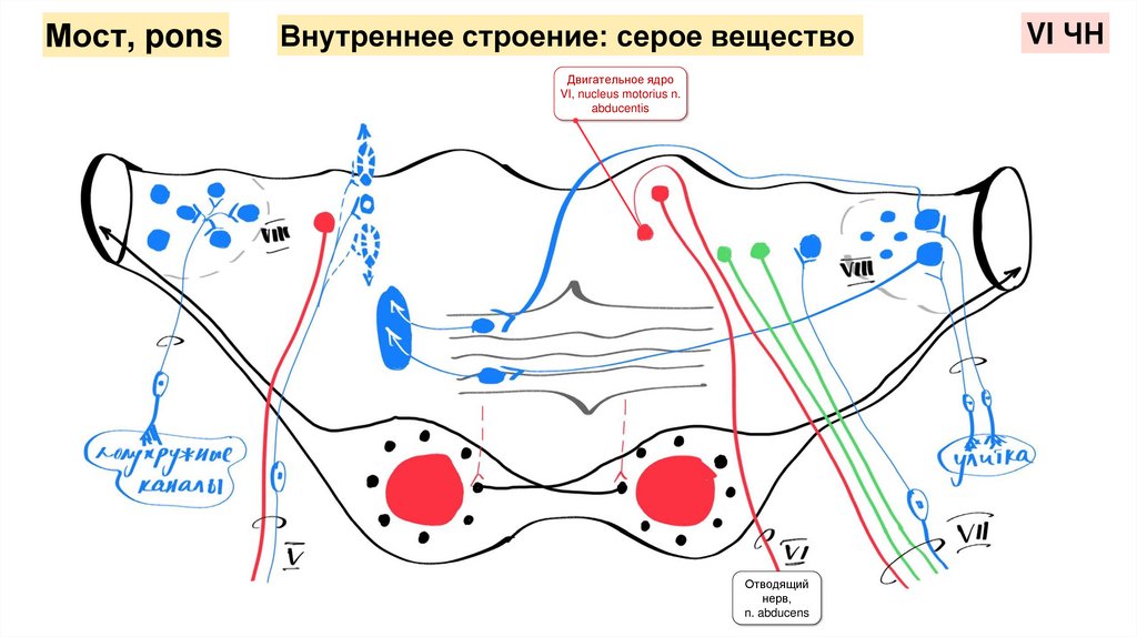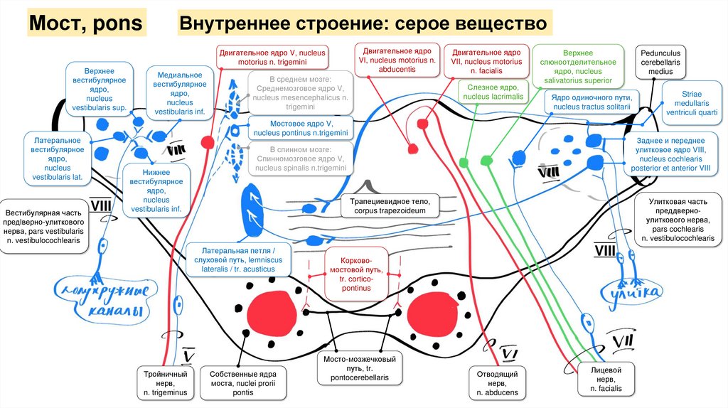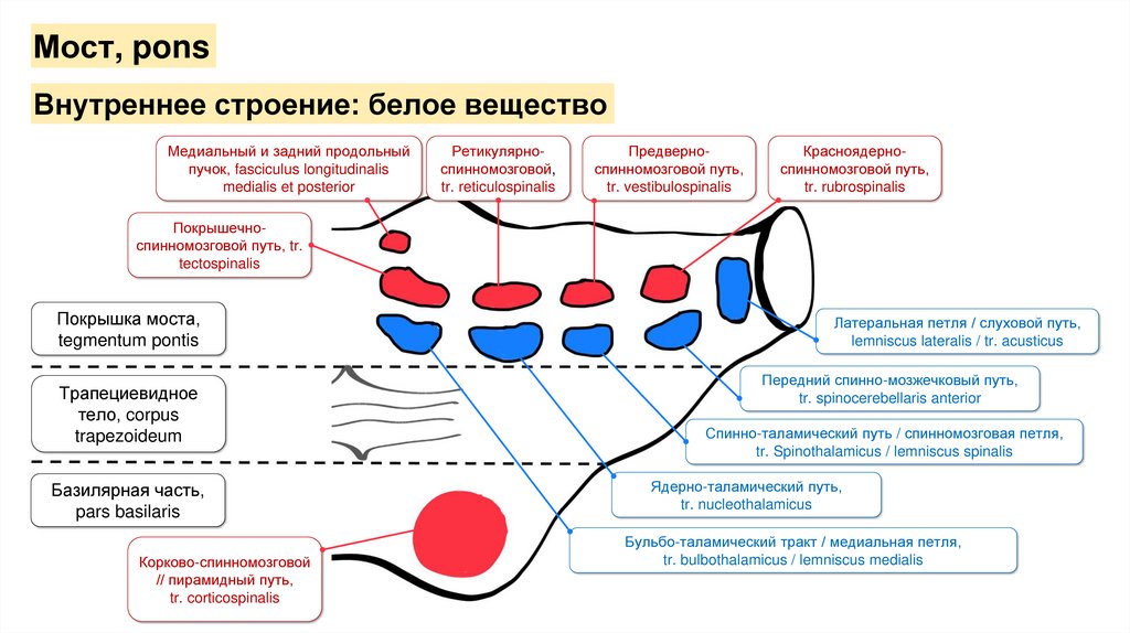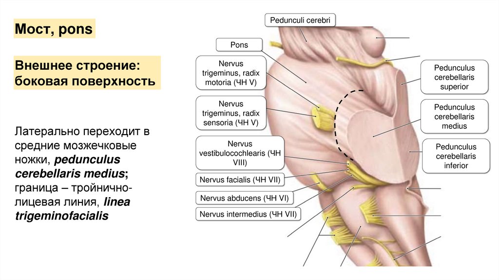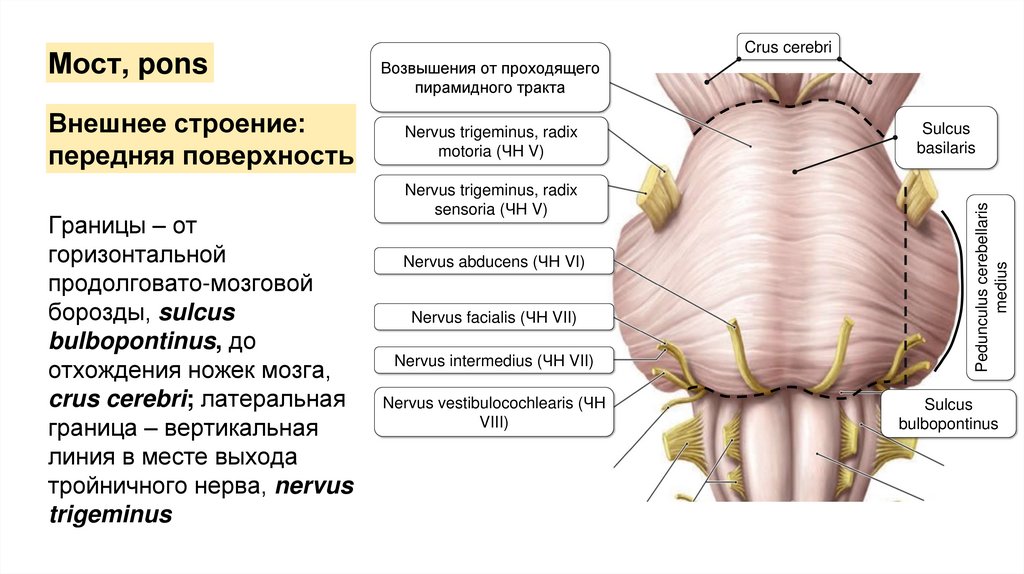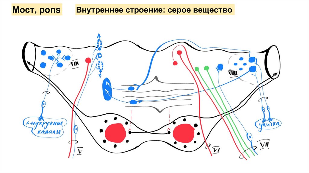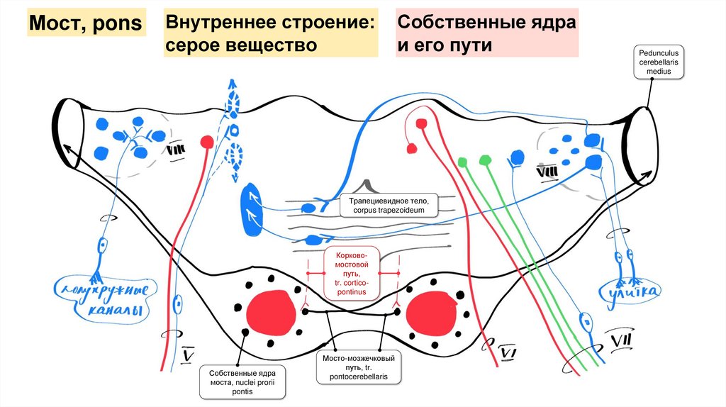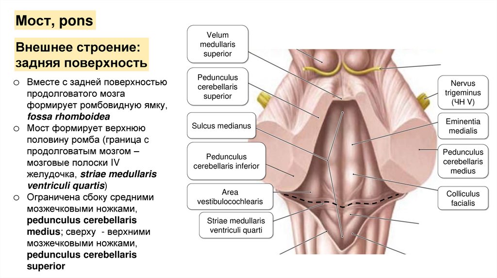 • Ромбовидный мозг: мост, его внешнее и внутреннее строение.