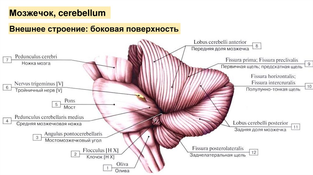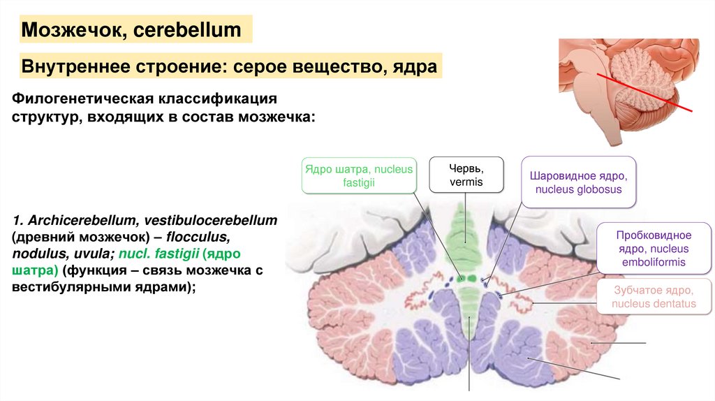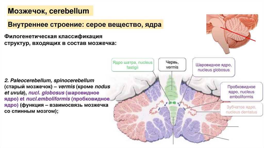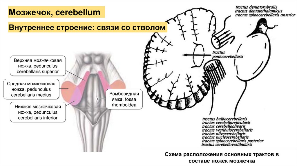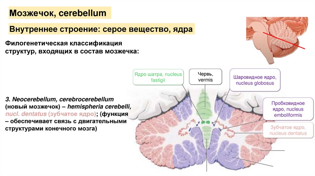 • Мозжечок, его внешнее и внутреннее строение, ядра мозжечка; ножки