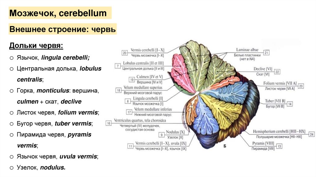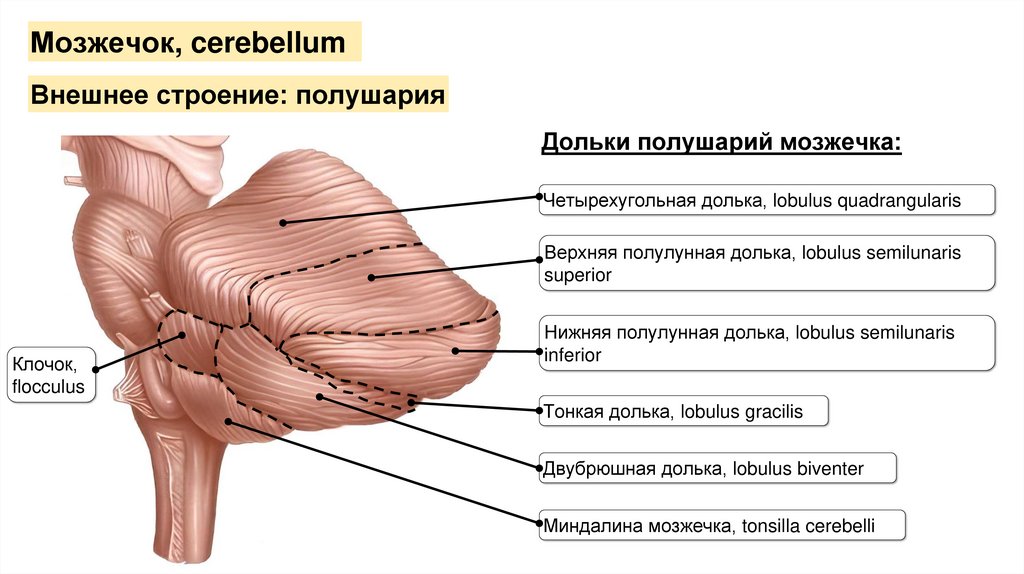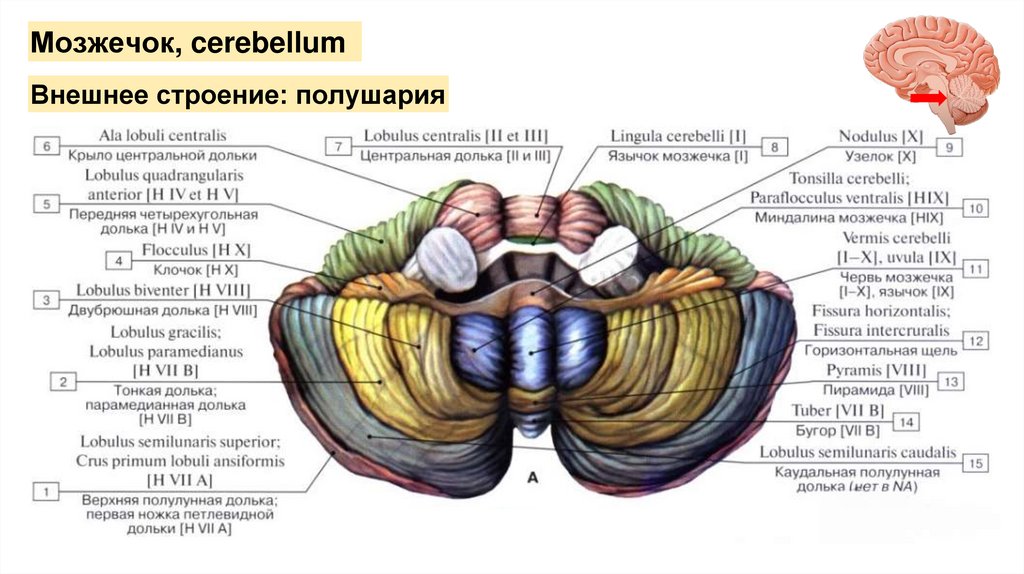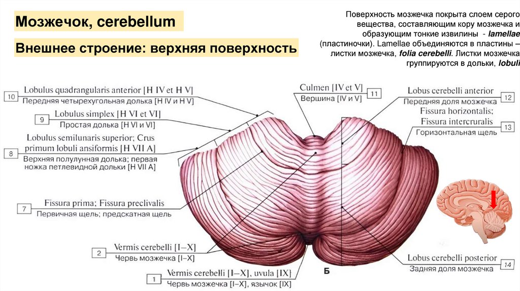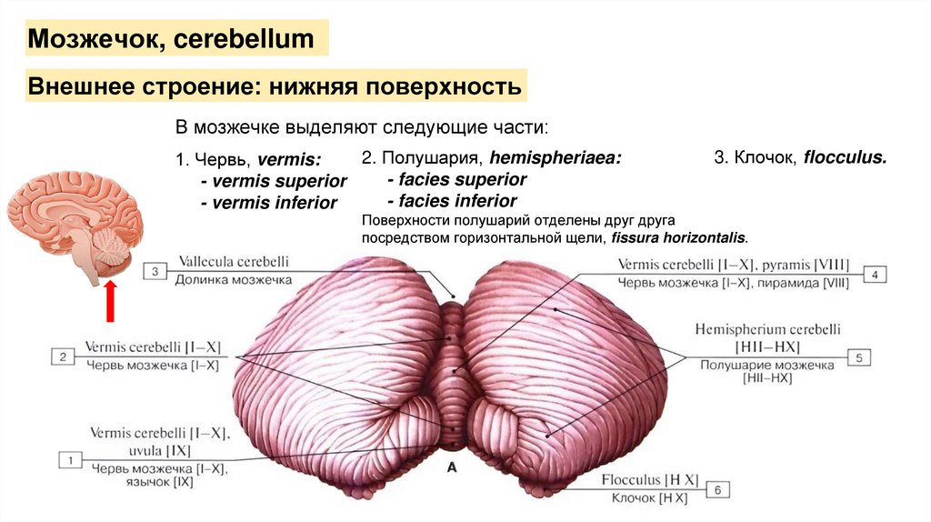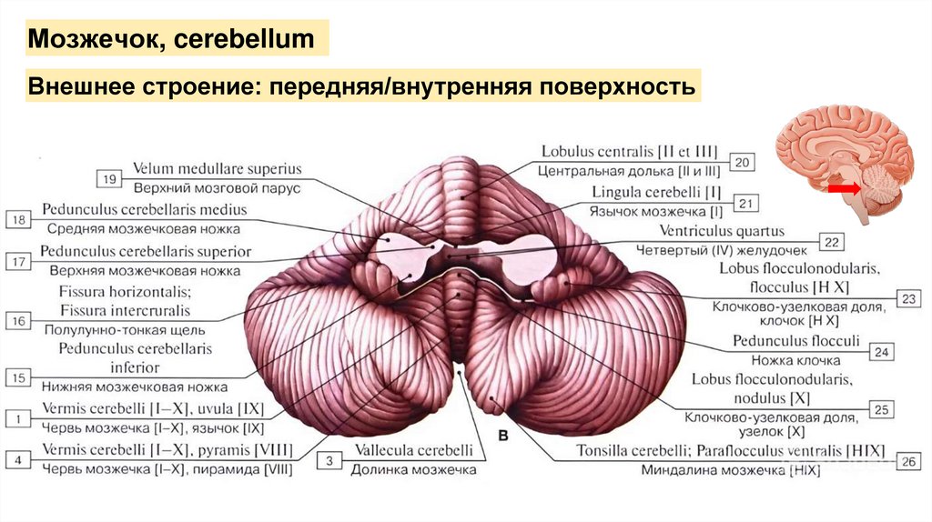 • Мозжечок, его внешнее и внутреннее строение, ядра мозжечка; ножки