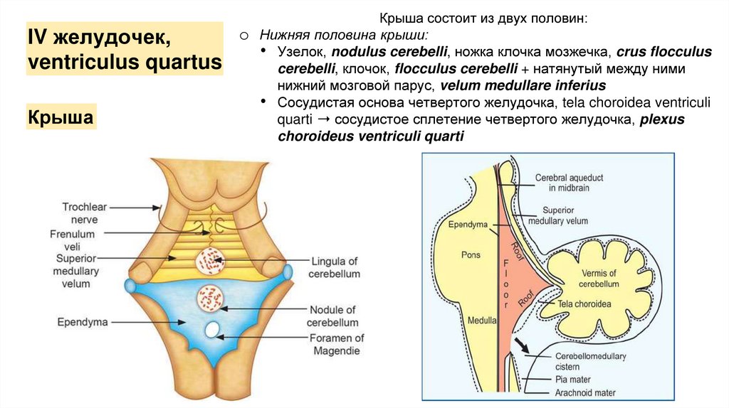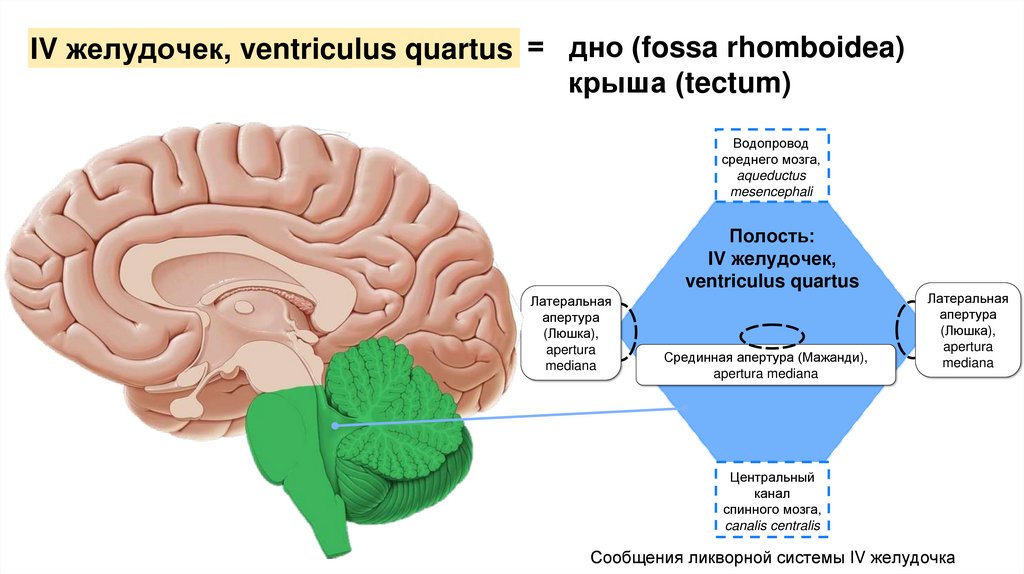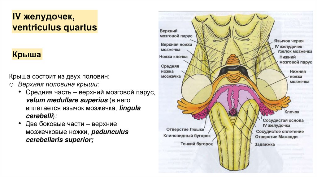 • Остаточная полость ромбовидного мозга – IV желудочек головного мозга;