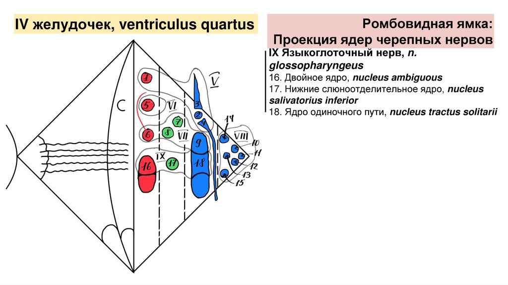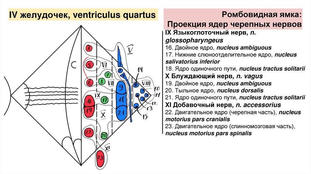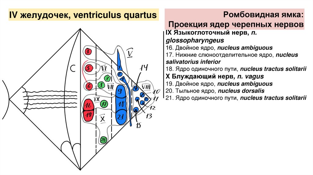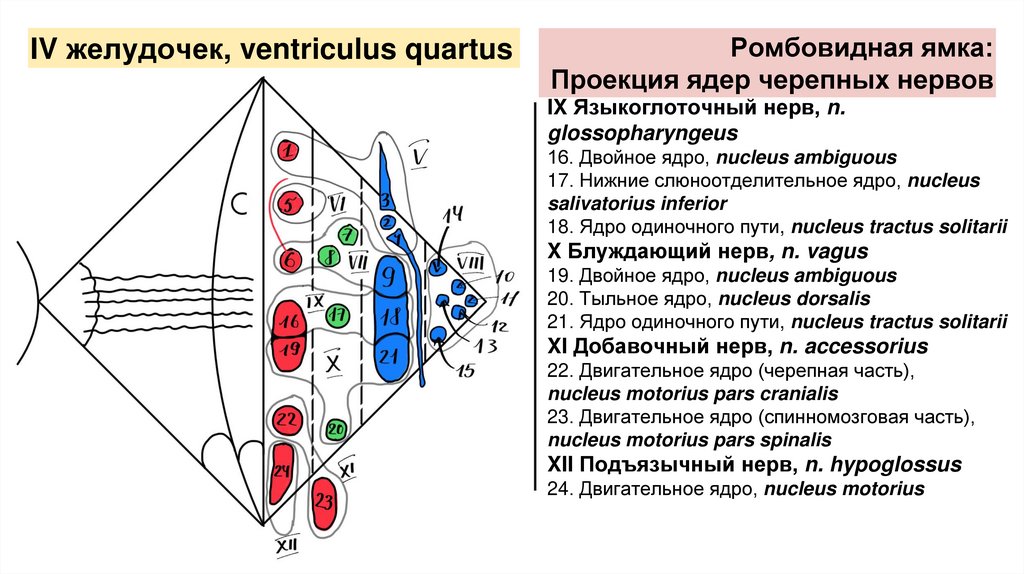 его стенки и сообщения. Проекция ядер черепных нервов на ромбовидную