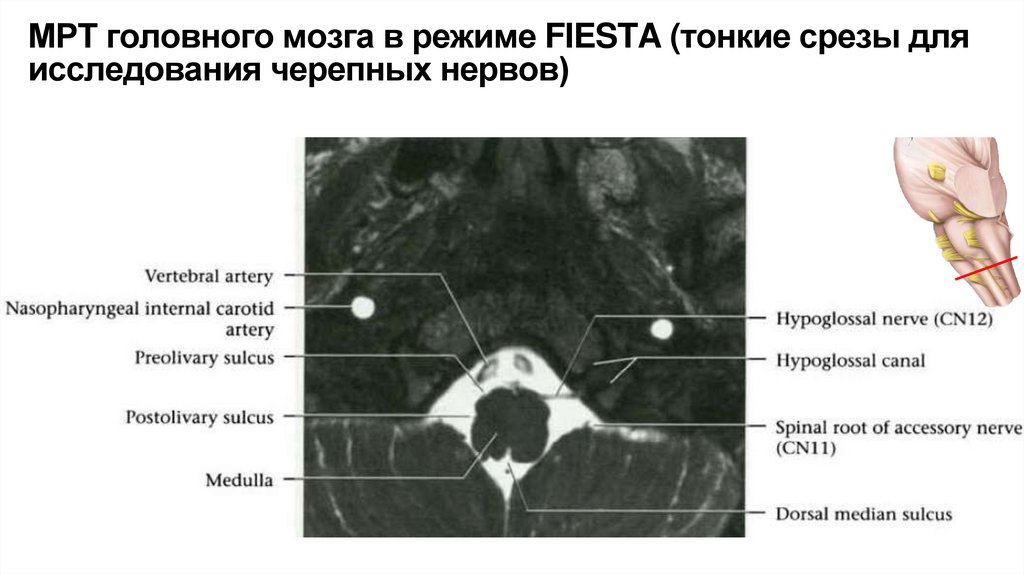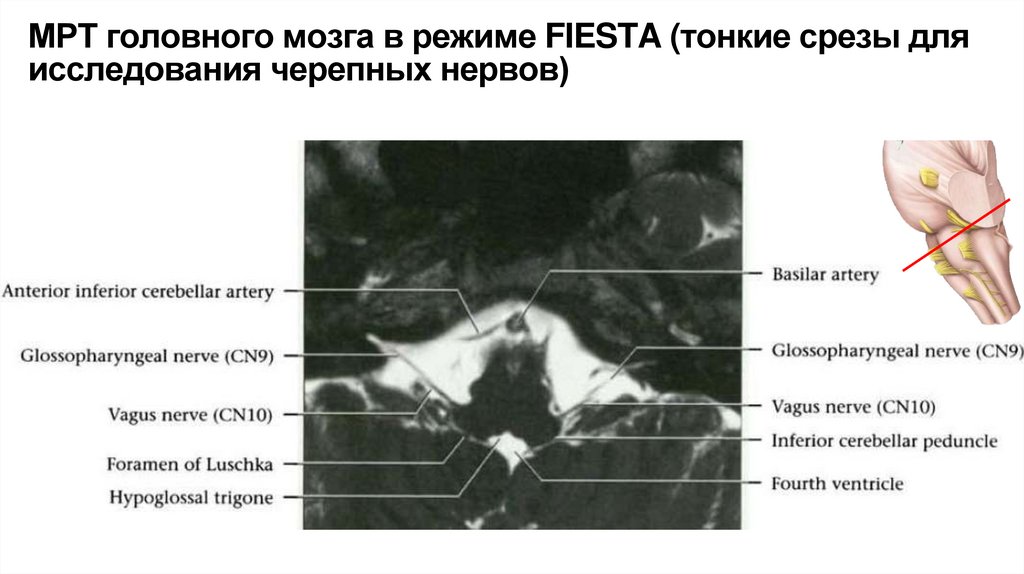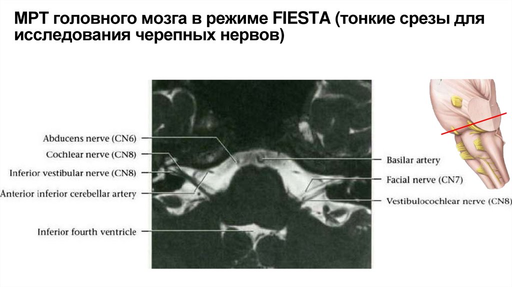 МРТ головного мозга в режиме FIESTA (тонкие срезы дляисследования черепных нервов)