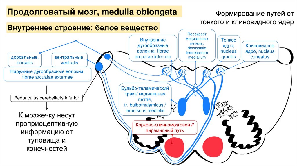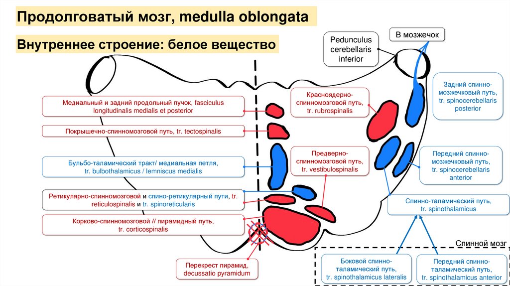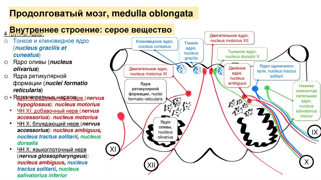 • Топография ядер и проводящих путей в продолговатом мозге.