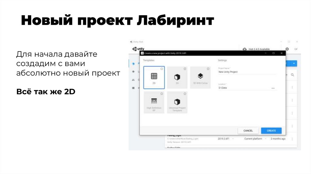 Новый проект ЛабиринтВ новом проекте игрок будет