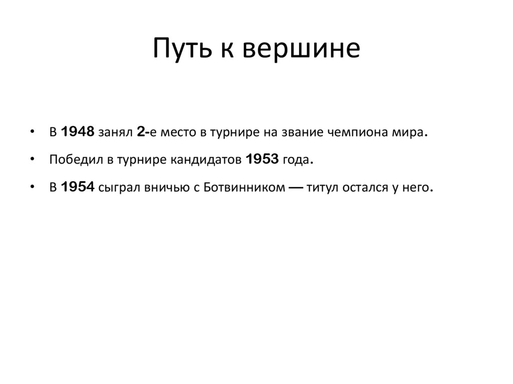 Путь к вершине• В 1948 занял 2-е место в турнире на звание чемпиона мира.