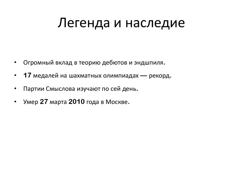 Легенда и наследие• Огромный вклад в теорию дебютов и эндшпиля.