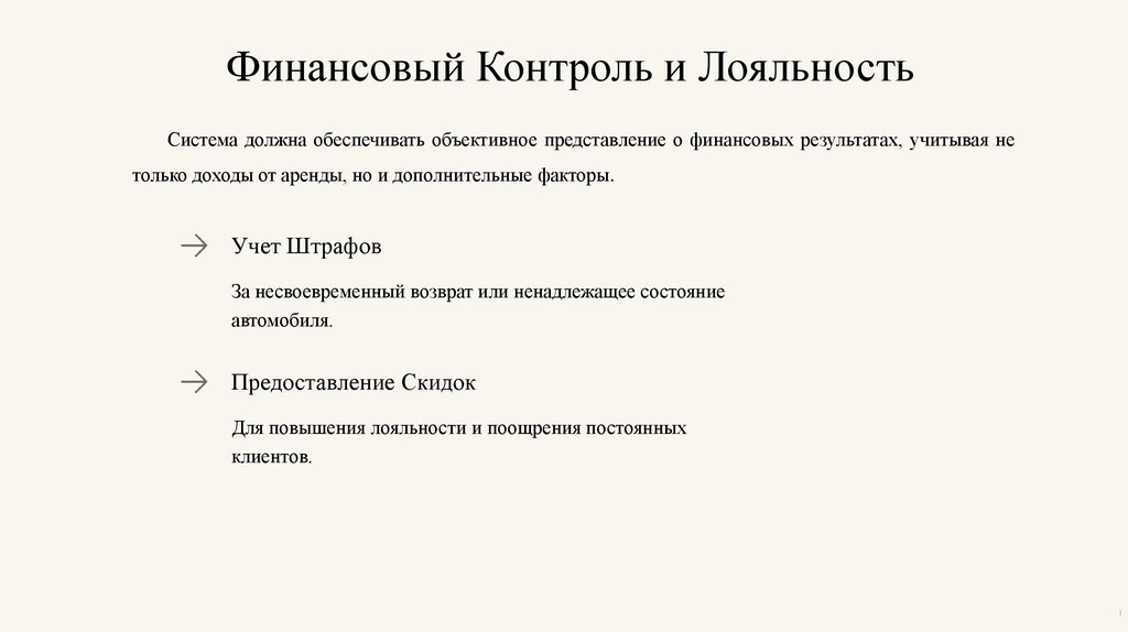 Финансовый Контроль и ЛояльностьСистема должна обеспечивать объективное представление о финансовых результатах, учитывая не