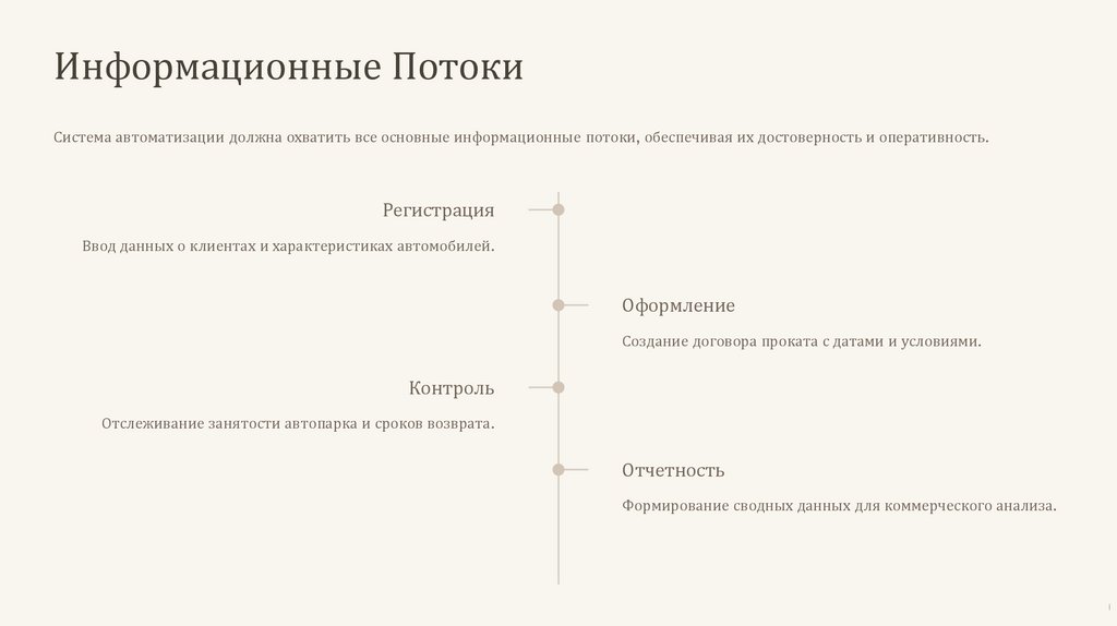 Информационные ПотокиСистема автоматизации должна охватить все основные информационные потоки, обеспечивая их достоверность и оперативность.