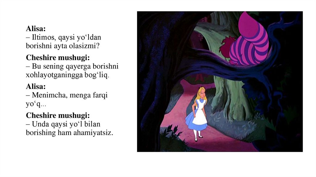Alisa:– Iltimos, qaysi yo‘ldan